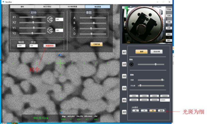 圖三:臺(tái)式掃描電鏡調(diào)整光斑